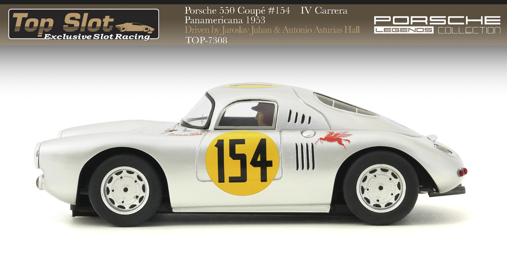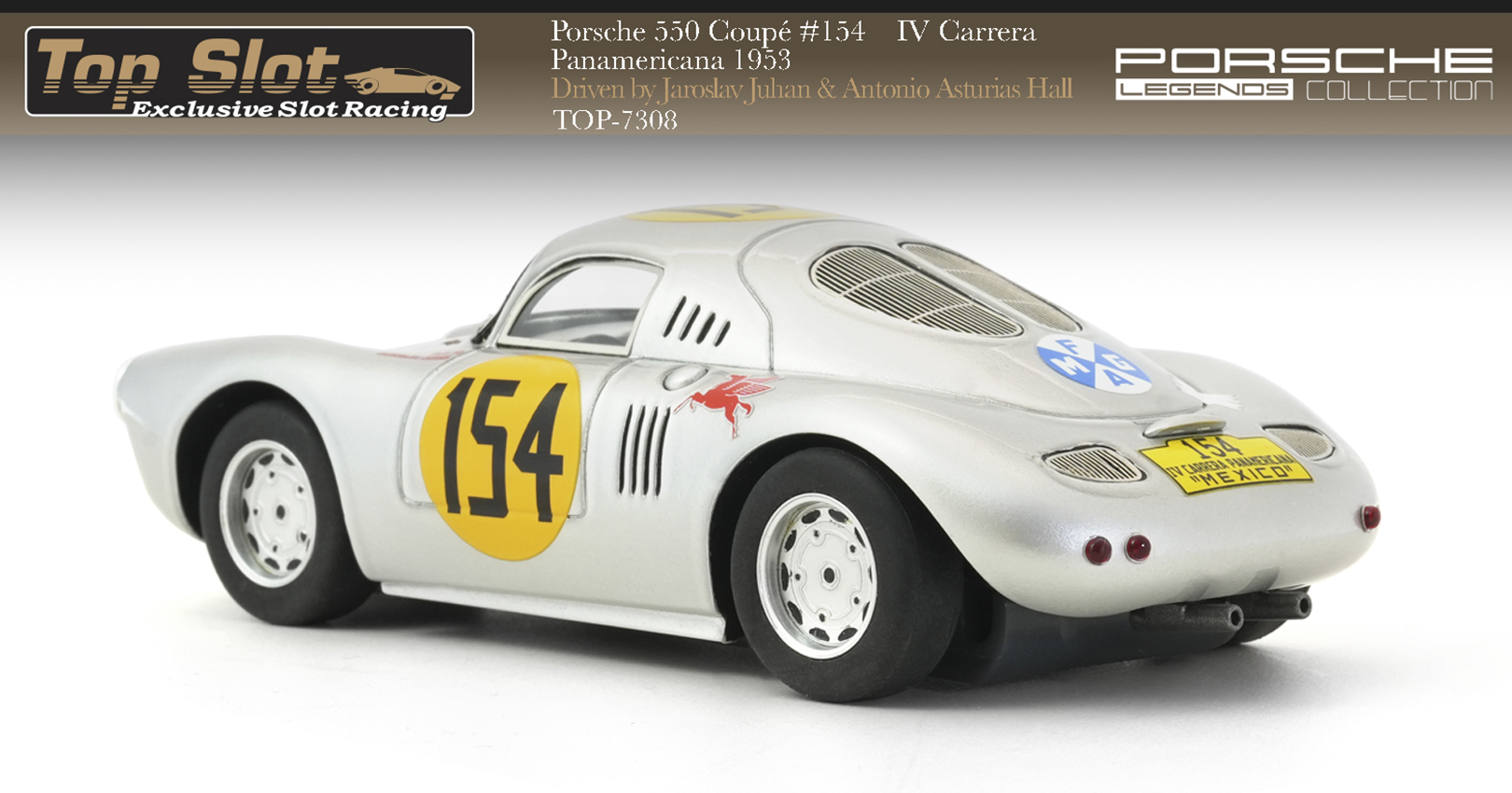 The Porsche 550 Coupé #154 competed in the brutal IV Carrera Panamericana 1953, driven by Slovak racer Jaroslav Juhan and his Mexican co-driver Antonio Asturias Hall.