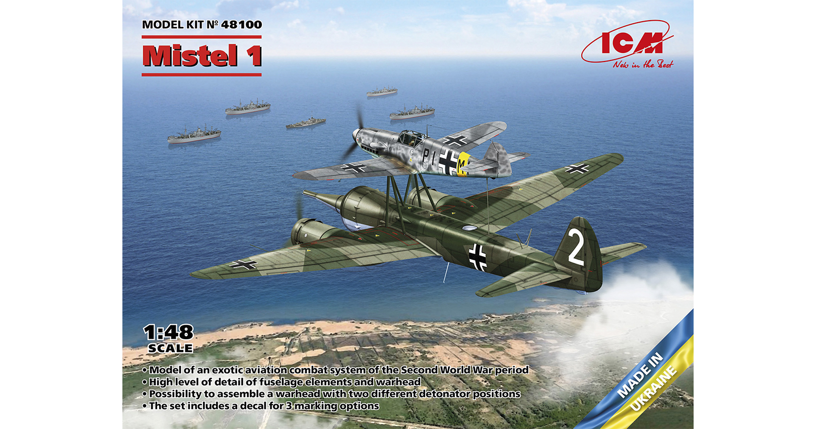 The Mistel Strike Aircraft Complex was a high-powered guided attack aircraft. The combat component of the complex was the Ju 88 bomber, which was fitted with a large warhead with an explosive material weighing between 1,800 and 2,000 kg instead of a cockpit. The aircraft thus becomes a kind of giant bomb. The nose of the fuselage was equipped with a long tip with a detonator to create a cumulative effect during the explosion. Above the bomber was located a carrier aircraft, usually a single-seat fighter, whose pilot had to control the entire system from the moment of takeoff until the target was identified. Than the carrier had to be separated from the Ju 88 and return to its airfield, and the bomber was to hit the target in peak mode. In the summer of 1944, the Mistel 1 was used by specialised Luftwaffe units against Allied ships off the coast of France, and in the spring of 1945, such aircraft systems struck bridges and crossings to stop the advancing Red Army.