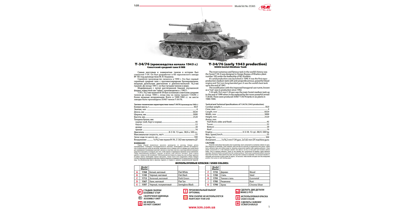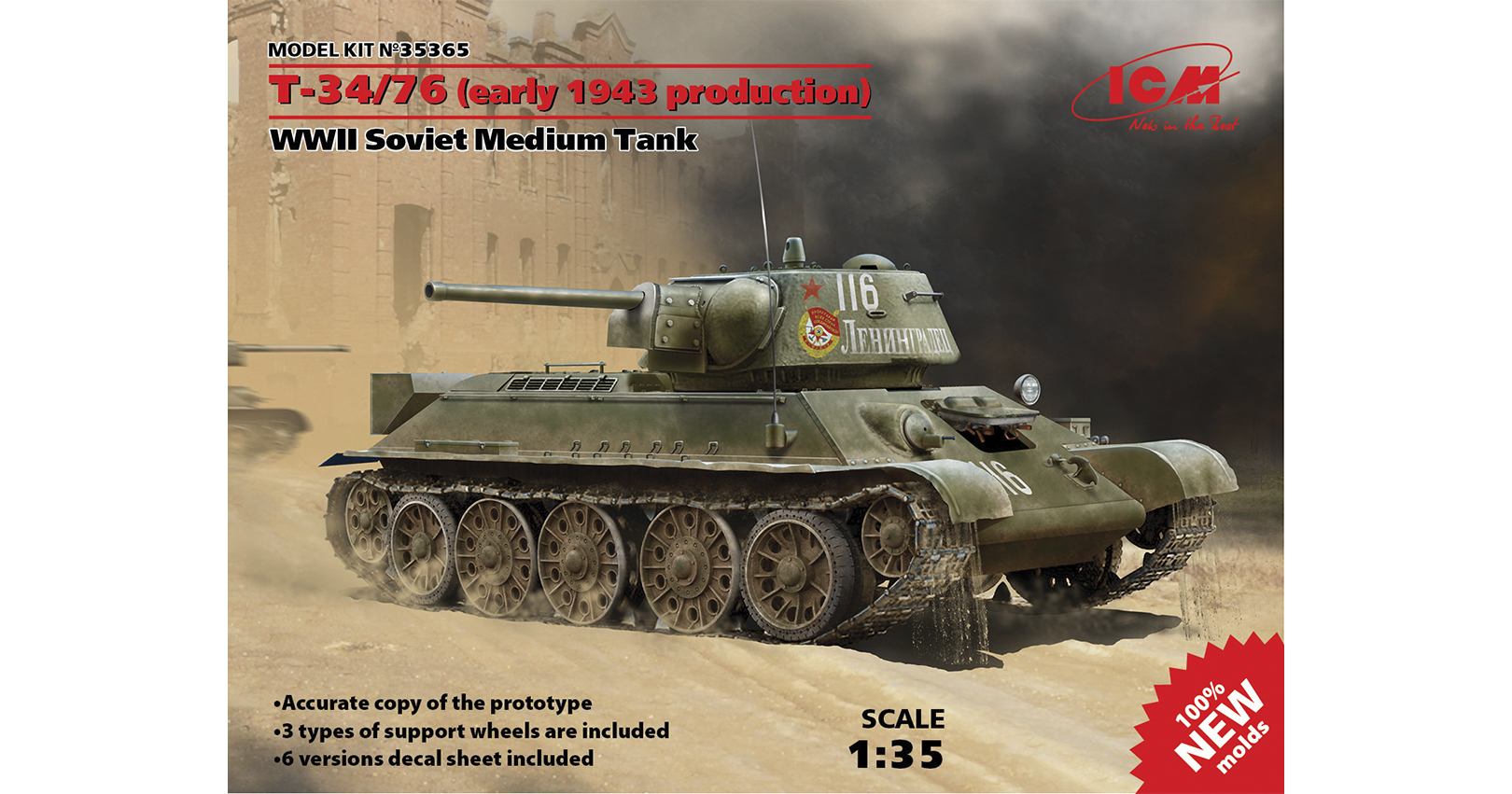 T-34 with 76,2 mm F-34 gun was the main Soviet medium tank up to the end of 1944 when it was replaced by the more powerful armed T-34-85. There were produced 35467 T-34/76 tanks in six plants in 1940-1944.