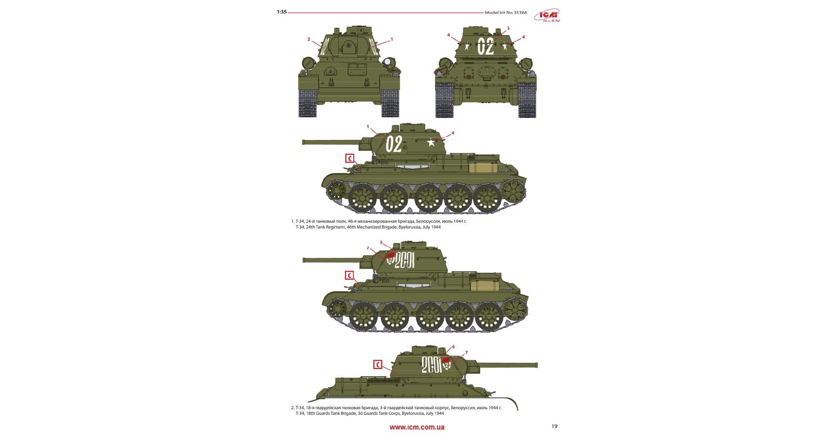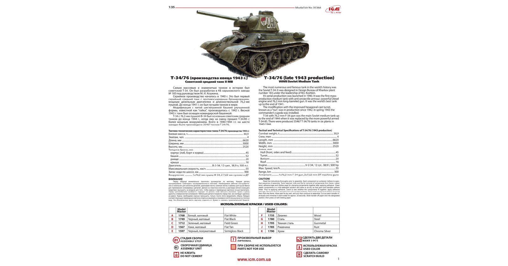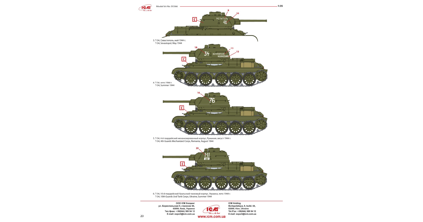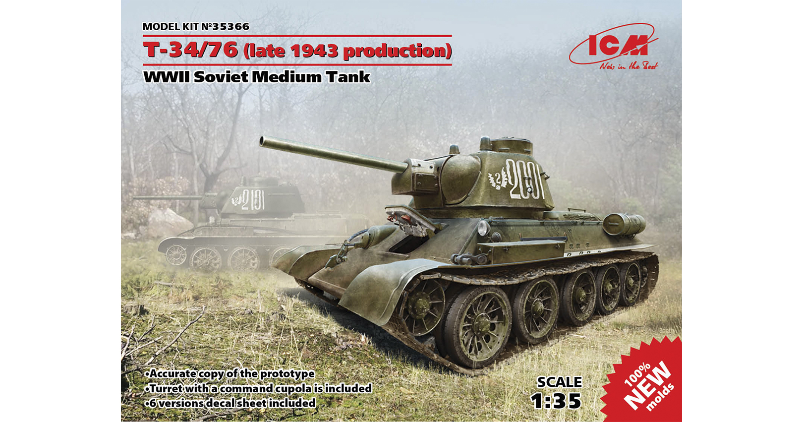 T-34 with 76,2 mm F-34 gun was the main Soviet medium tank up to the end of 1944 when it was replaced by the more powerful armed T-34-85. There were produced 35467 T-34/76 tanks in six plants in 1940-1944.