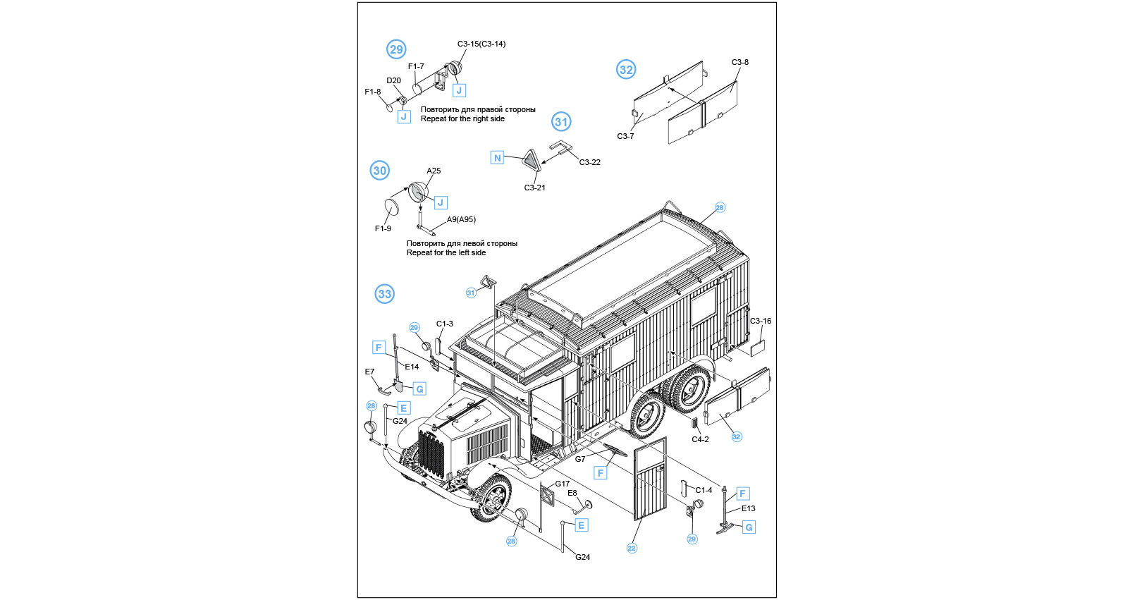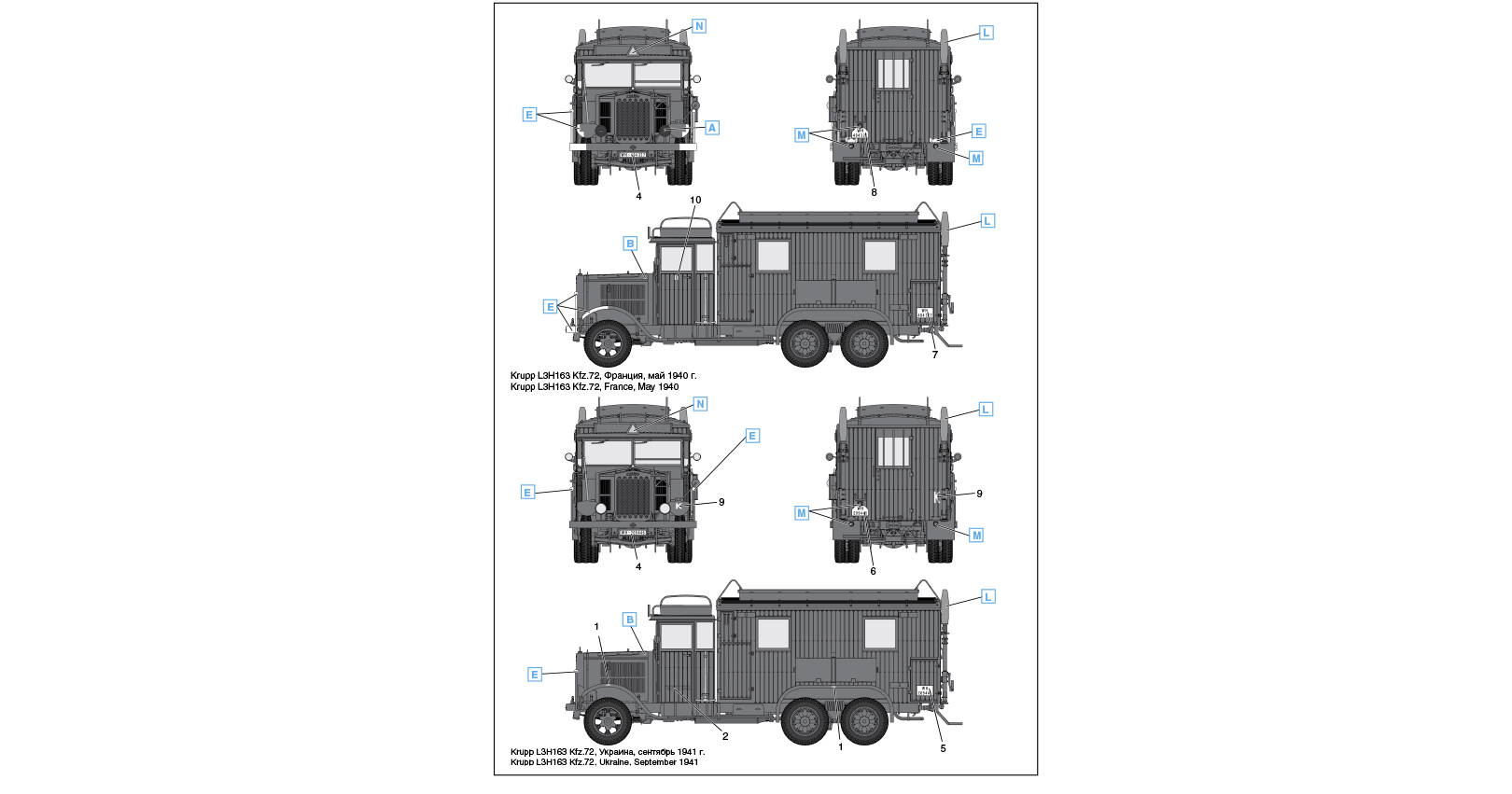 Some chassis had special bodies. One of them was Kfz.72 van body. These machines were used as transmitters and receivers in the powerful A/B mobile radio stations.