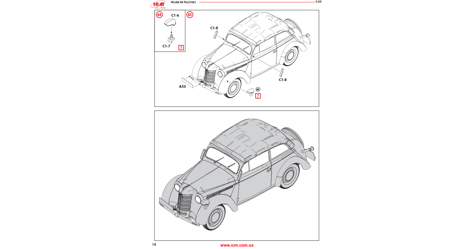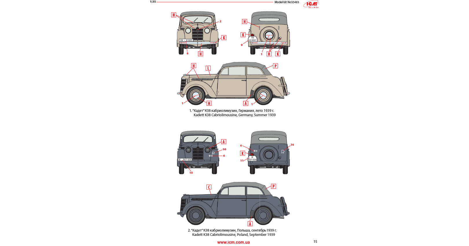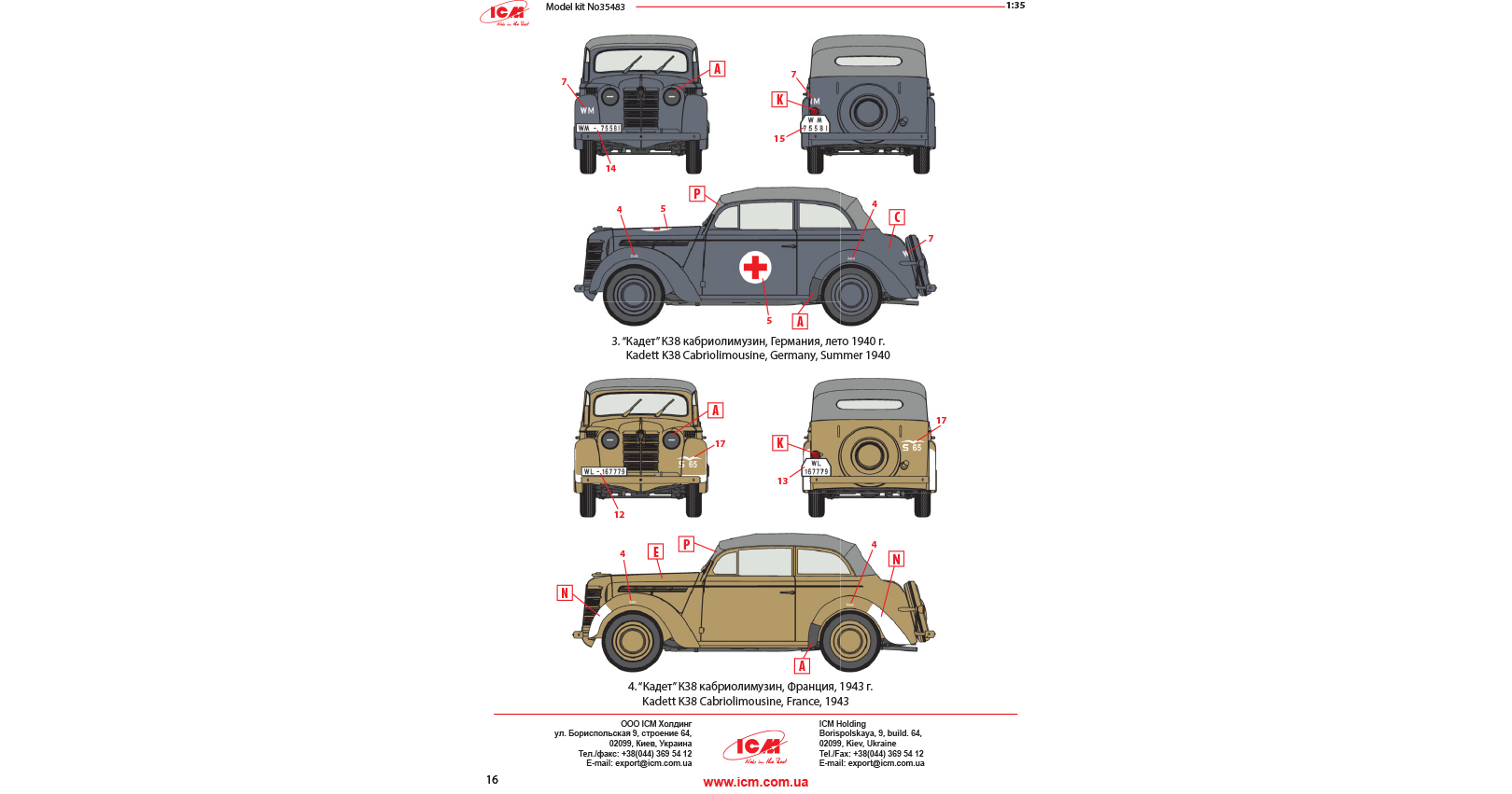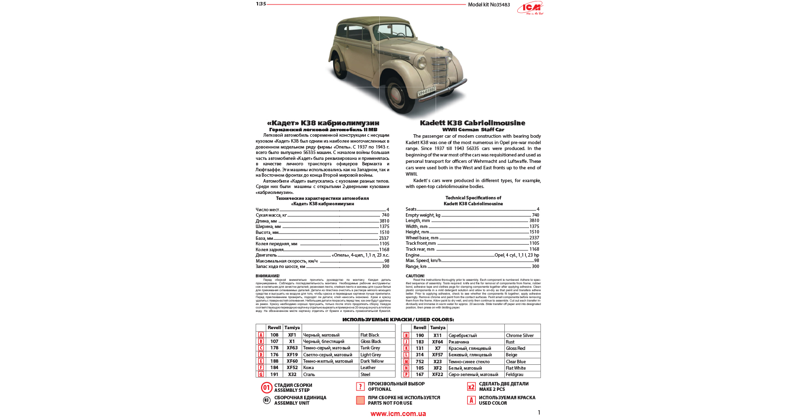 The passenger car of modern construction with bearing body Kadett K38 was one of the most numerous in Opel pre-war model range. Since 1937 till 1943 56335 cars were produced. In the beginning of the war most of the cars was requisitioned and used as personal transport for officers of Wehrmacht and Luftwaffe. These cars were used both in the West and East fronts up to the end of WWII.
