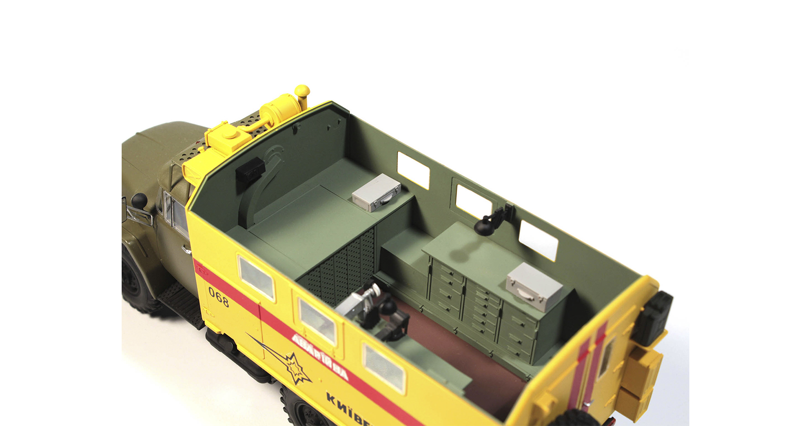 There were many ZiL-131 modifications for Soviet Army and civilian use. One of them was the emergency truck in K-131 body.