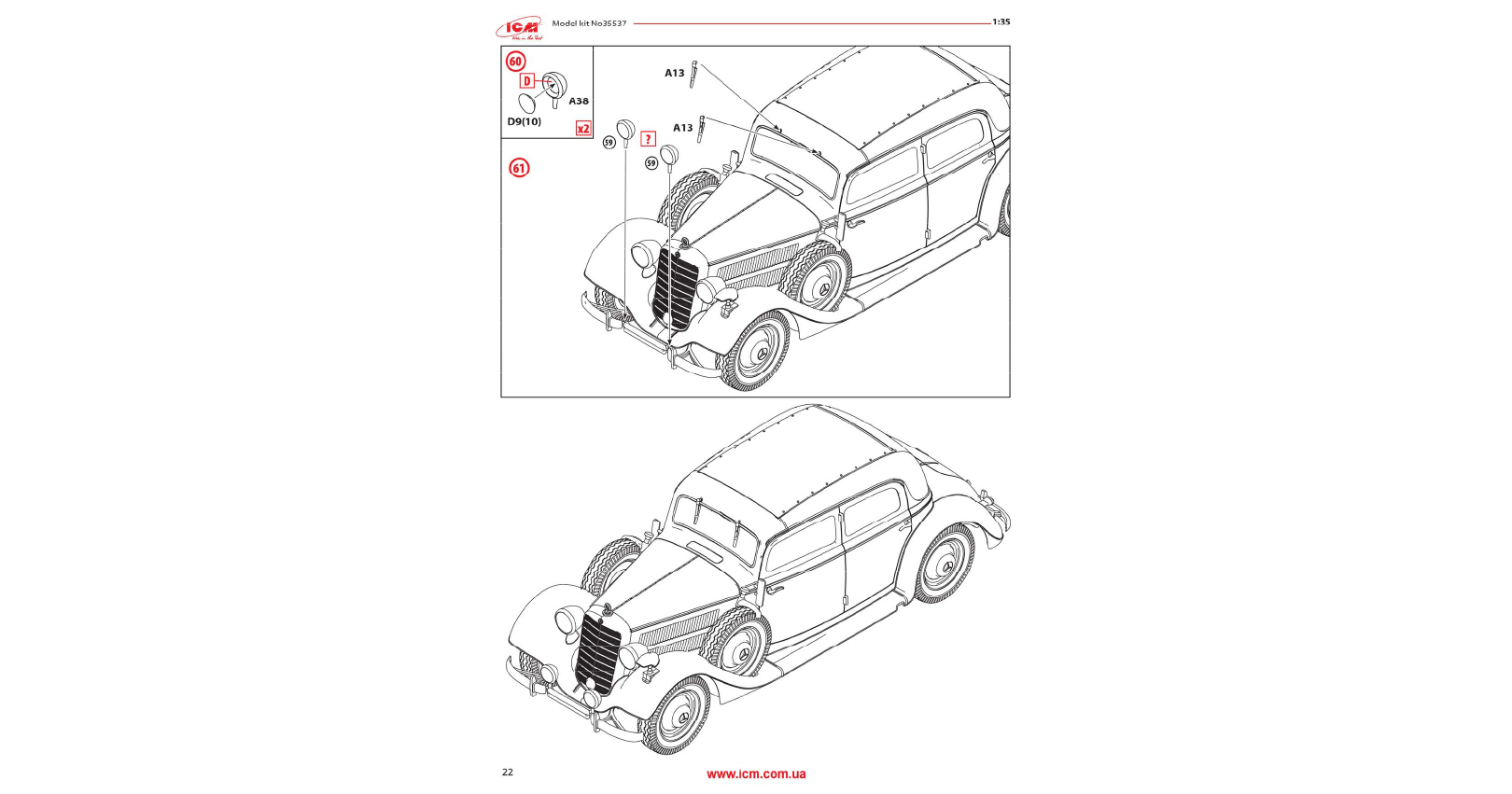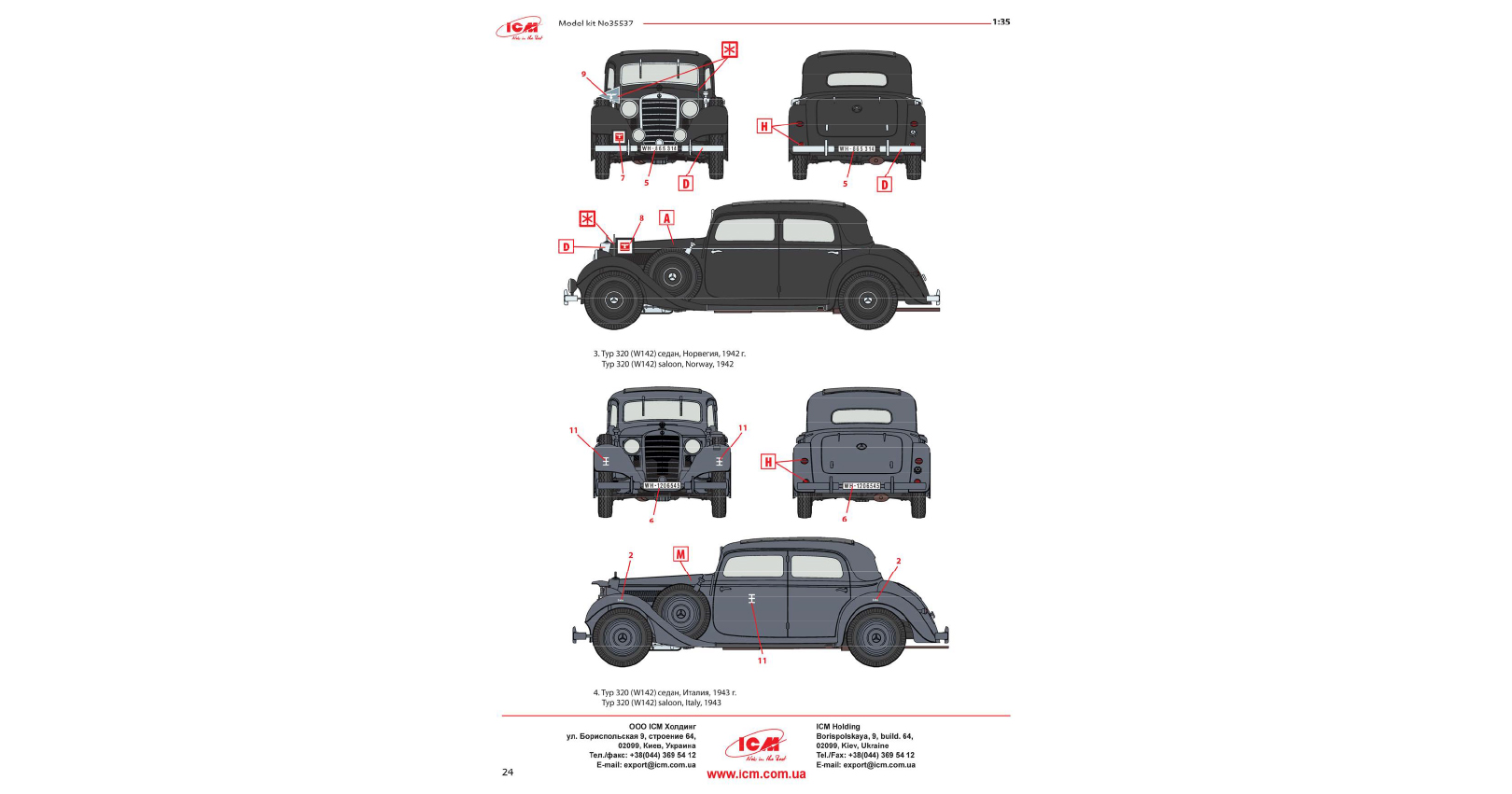 The passenger car Typ 320 (W142) was the middle of Daimler-Benz pre-war model range. Since 1937 till 1942 4037 cars were produced. In the beginning of the war most of the Typ 320 (W142) cars was requisitioned and used as personal transport for senior officers and generals of Wehrmacht and Luftwaffe. These cars were used both in the West and East fronts up to the end of WWII.
