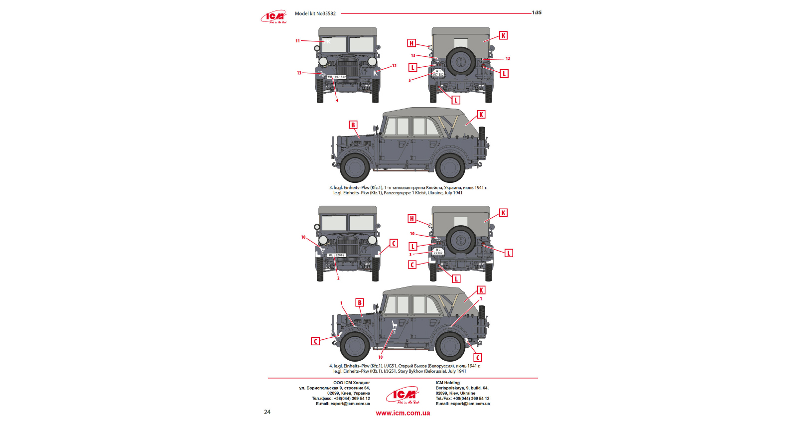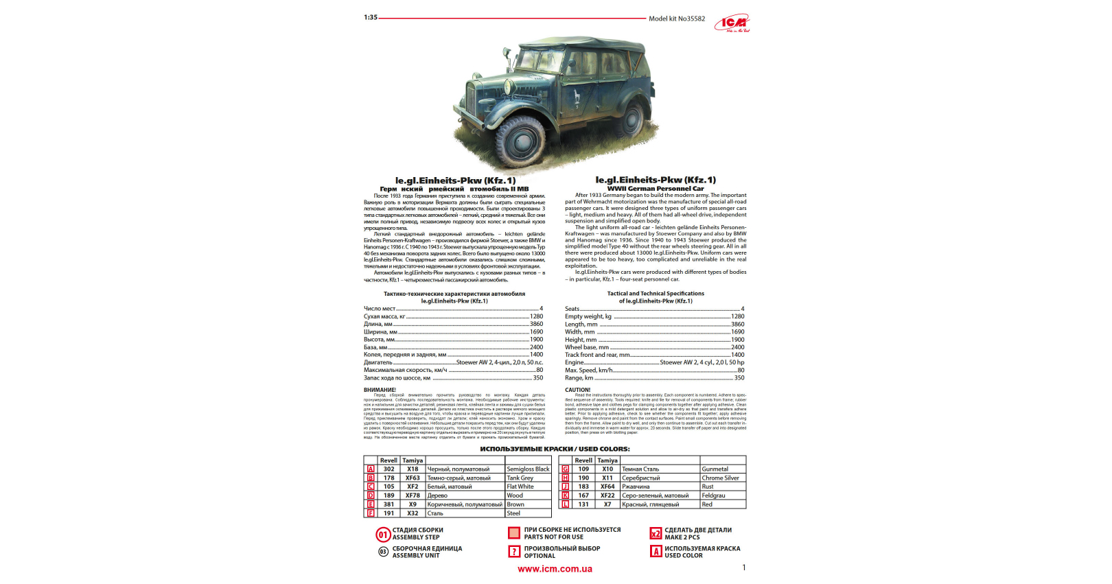le.gl.Einheits-Pkw cars were produced with different types of bodies – in particular, Kfz.1 – four-seat personnel car.