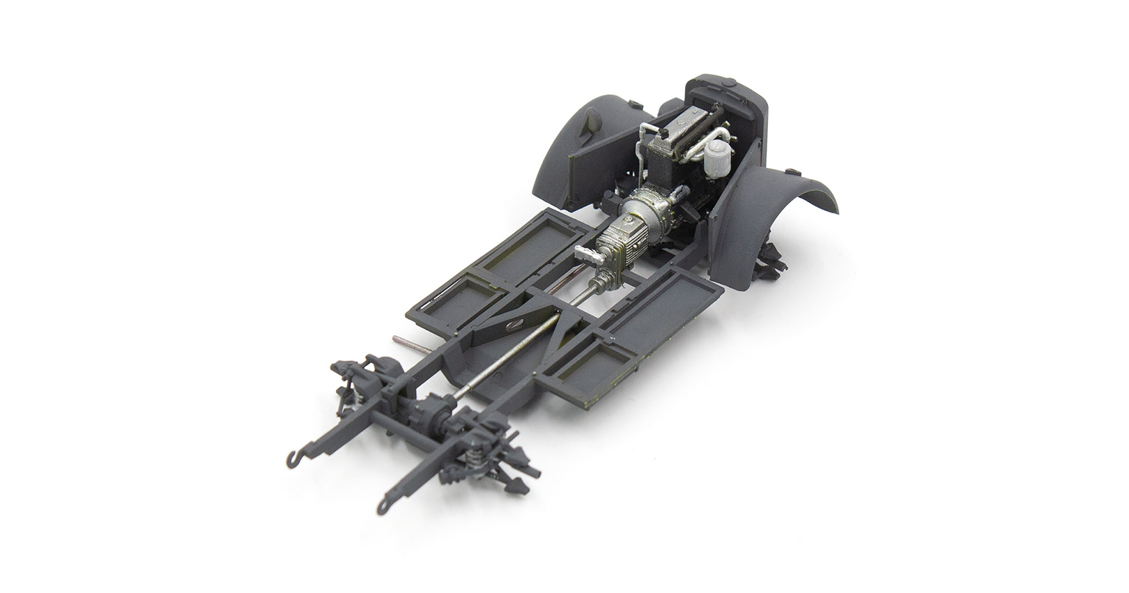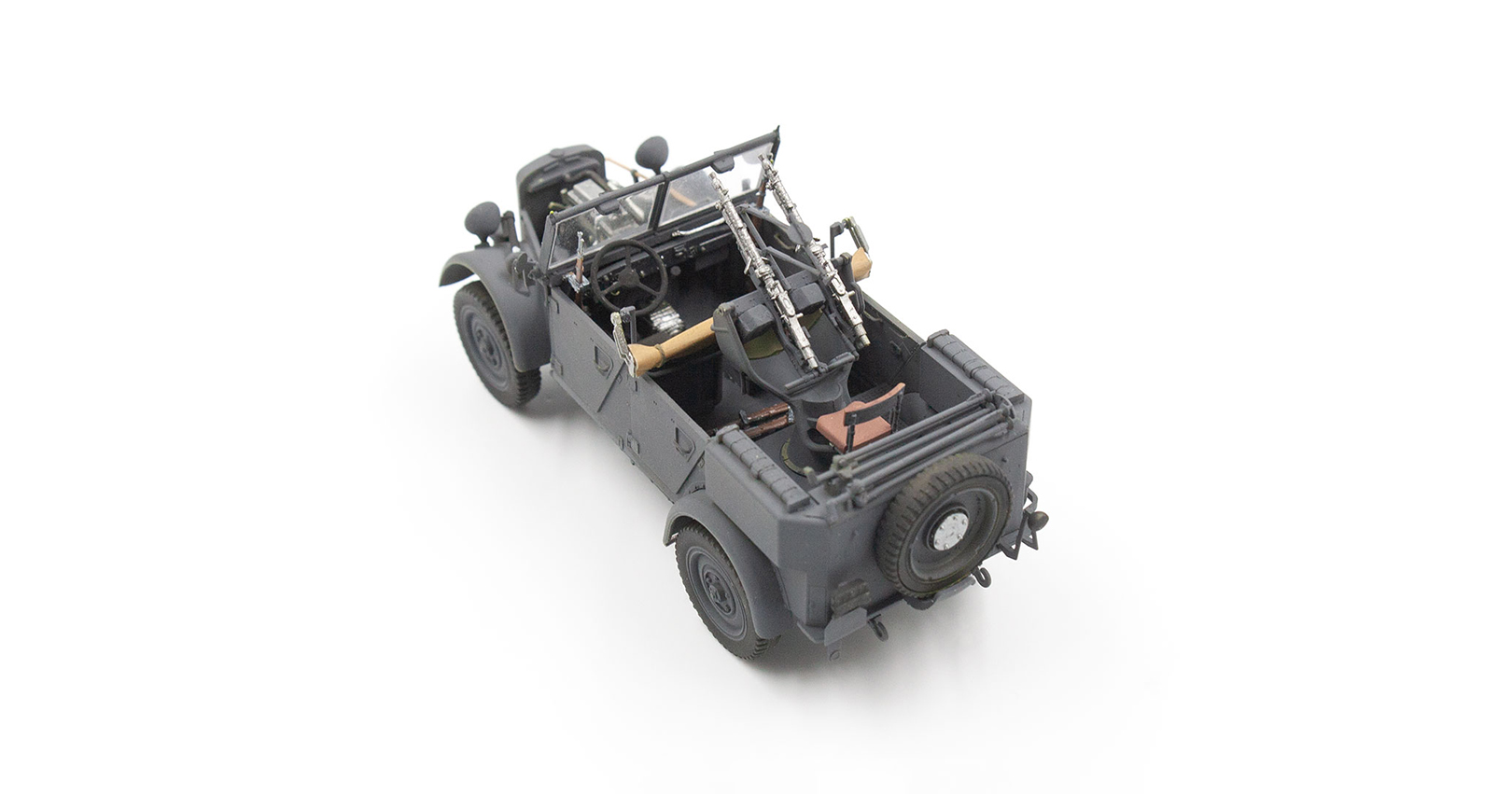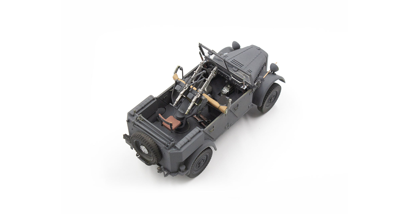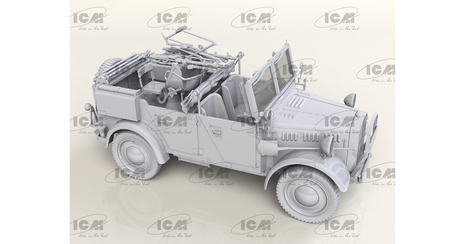 The car is simple and technologically advanced in production, an open all-metal three- or four-door body (in the Kfz.2 and Kfz.4 versions there was no right rear door, in place of which a fuel canister was attached outside the body) with a folding canvas top and removable celluloid windows on the upper part doors.