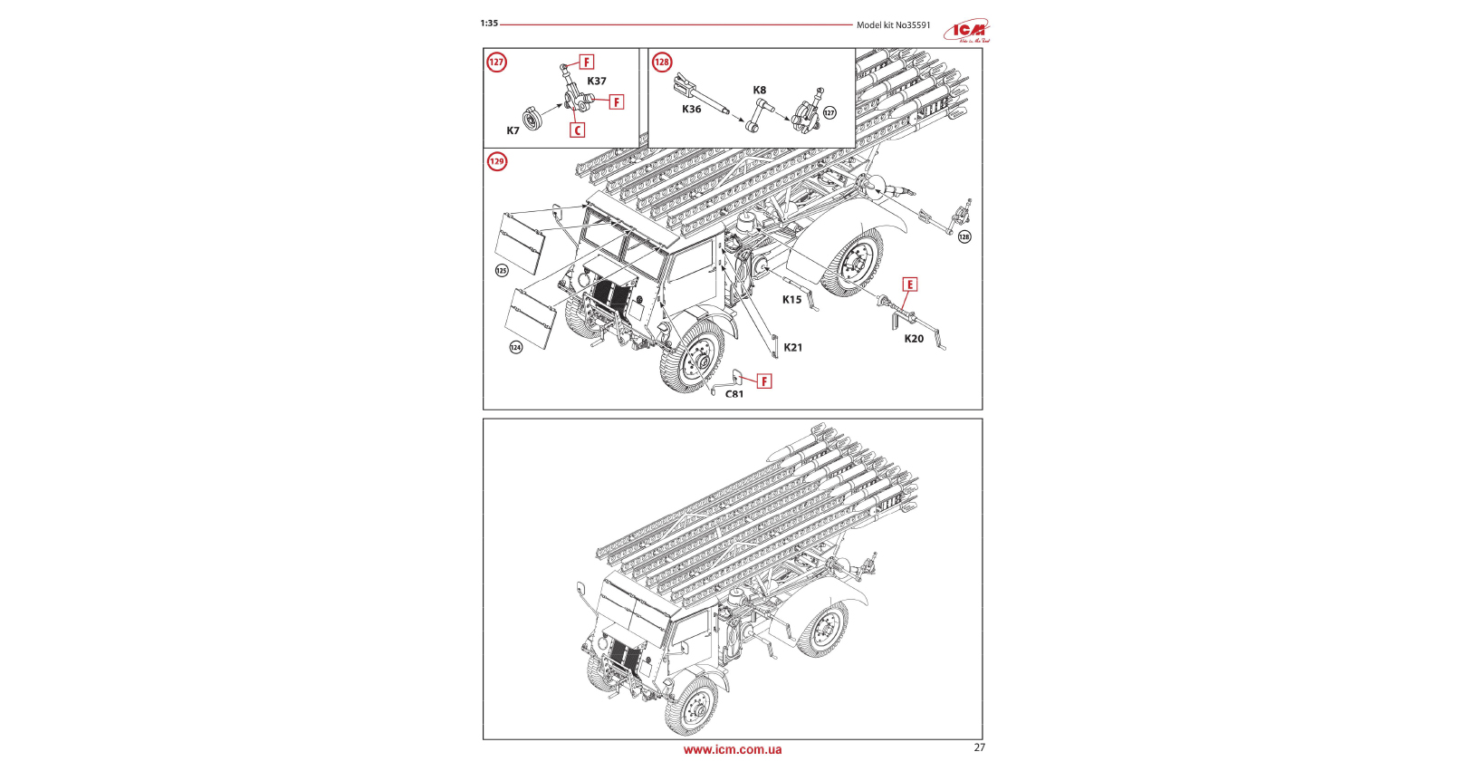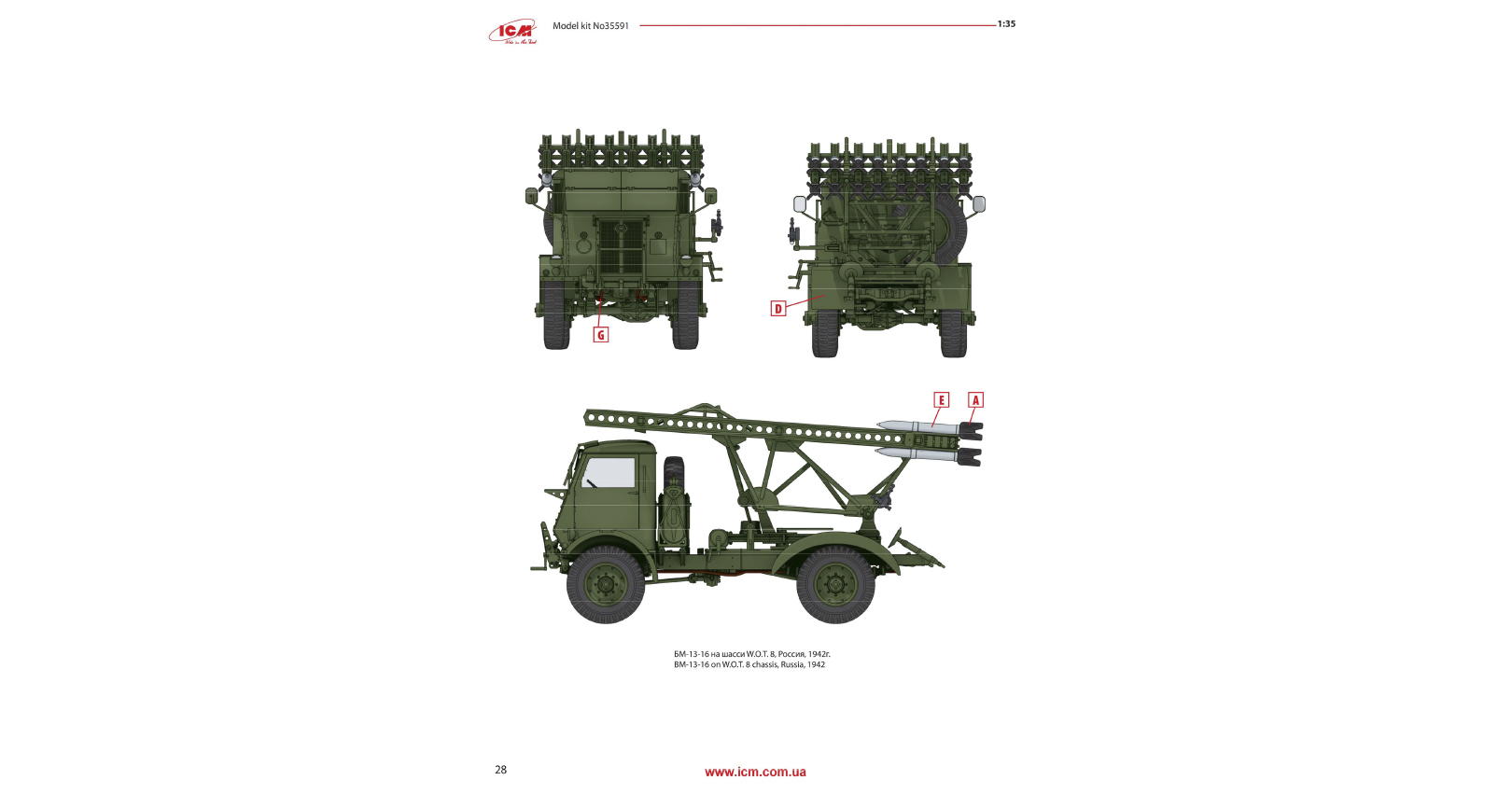 kit 1/35 camion sovietico BM-13-16 sobre base W.O.T.8 con lanzacohetes RS-132