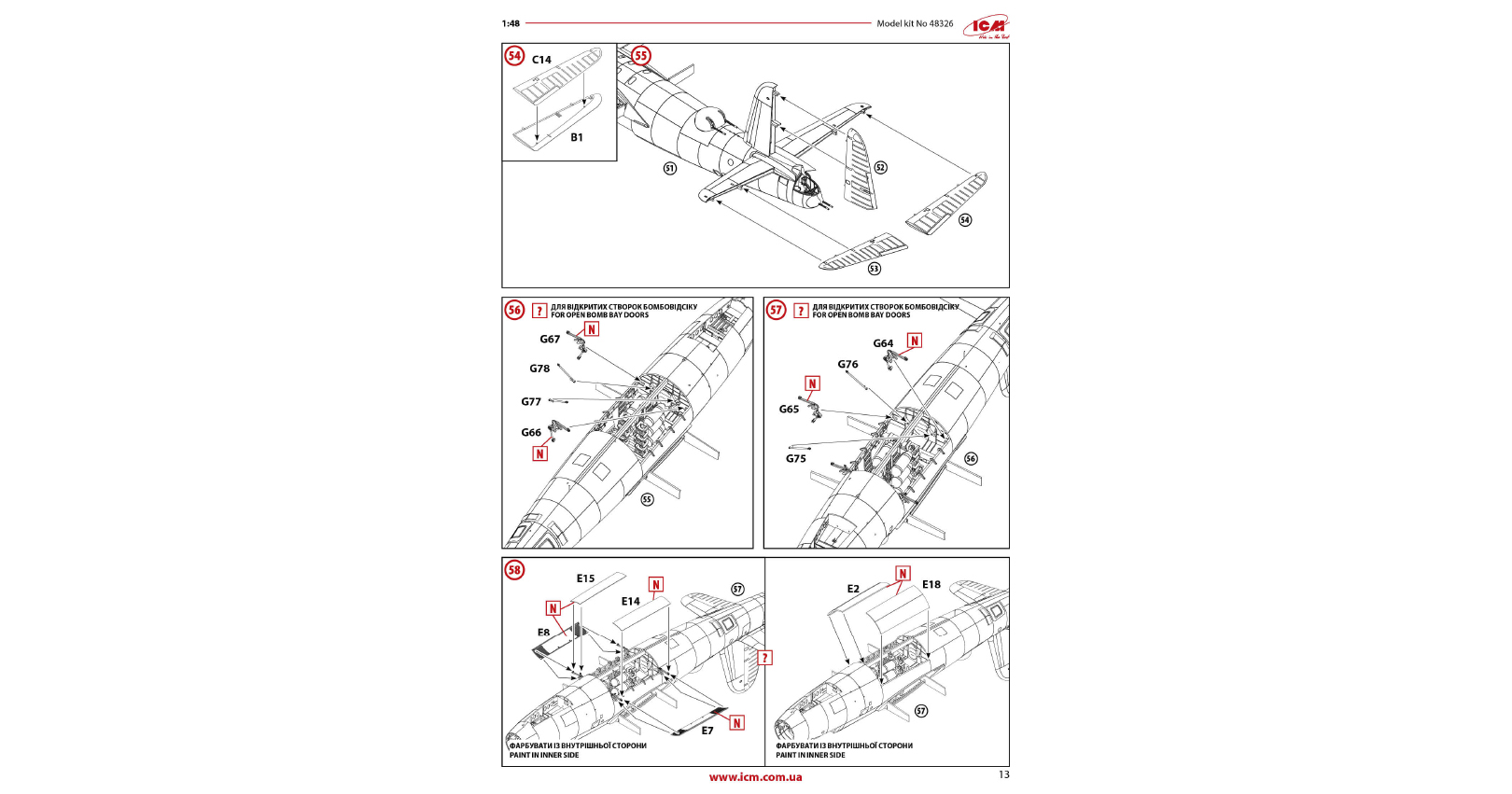 The Marauder Mk.III had only minor differences from the B-26F. All Mk.IIIs featured spoked nose wheel landing gear, whereas B-26Fs typically used solid wheel discs. The tail gun position was also modified—the plexiglass covering near the machine guns was replaced with canvas. Some sources indicate that Marauder Mk.IIIs were equipped with British-designed bomb sights.