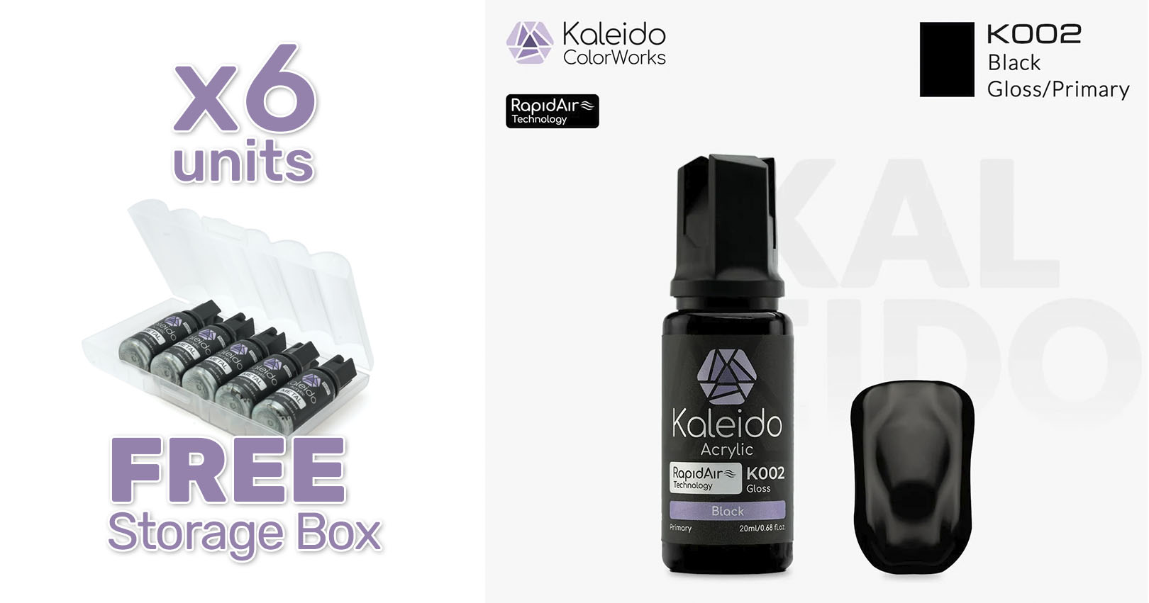 Pintura Kaleido K002 negro brillante. Rapidair 6x20ml