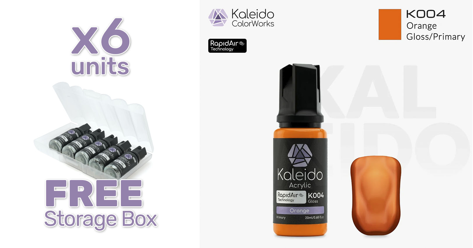 Pintura Kaleido K004 naranja brillante. Rapidair 6x20ml