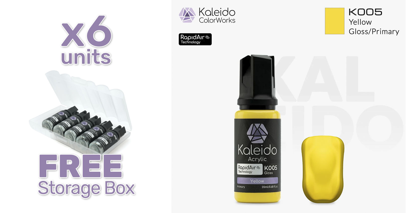 Pintura Kaleido K005 amarillo brillante. Rapidair 6x20ml