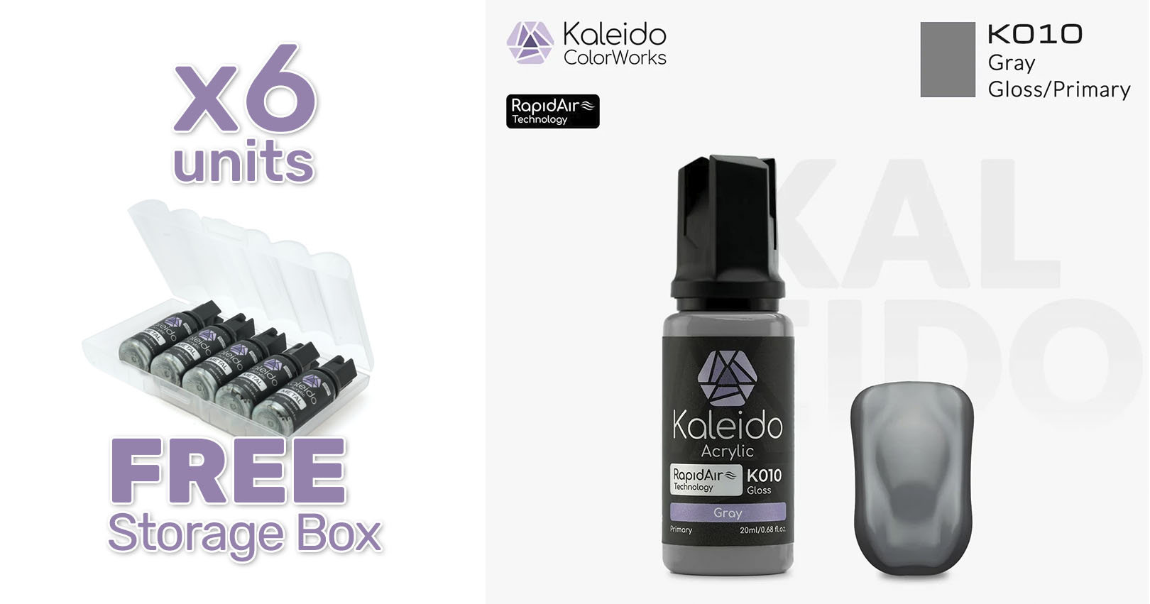 Pintura Kaleido K010 Gris brillante. Rapidair 6x20ml