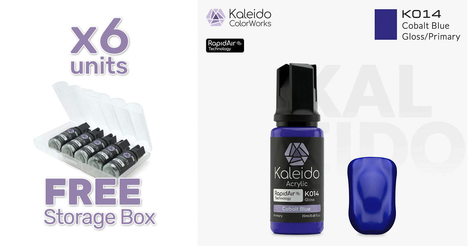 Pintura Kaleido K014 Azul cobalto brillante. Rapidair 6x20ml