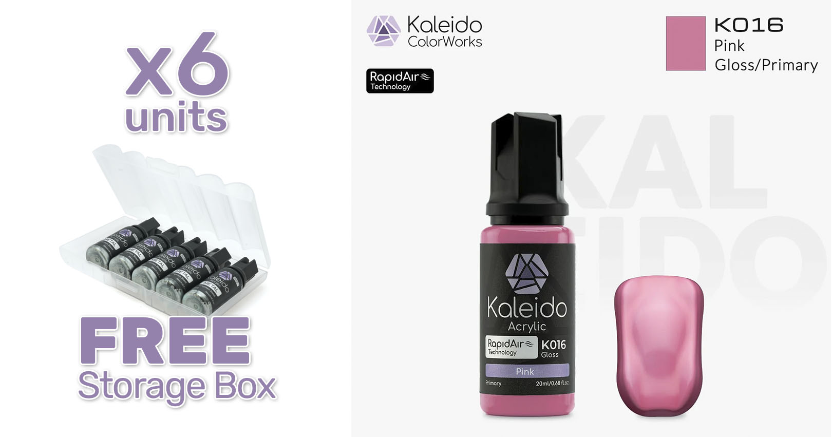 Pintura Kaleido K016 rosa brillante . Rapidair 6x20ml