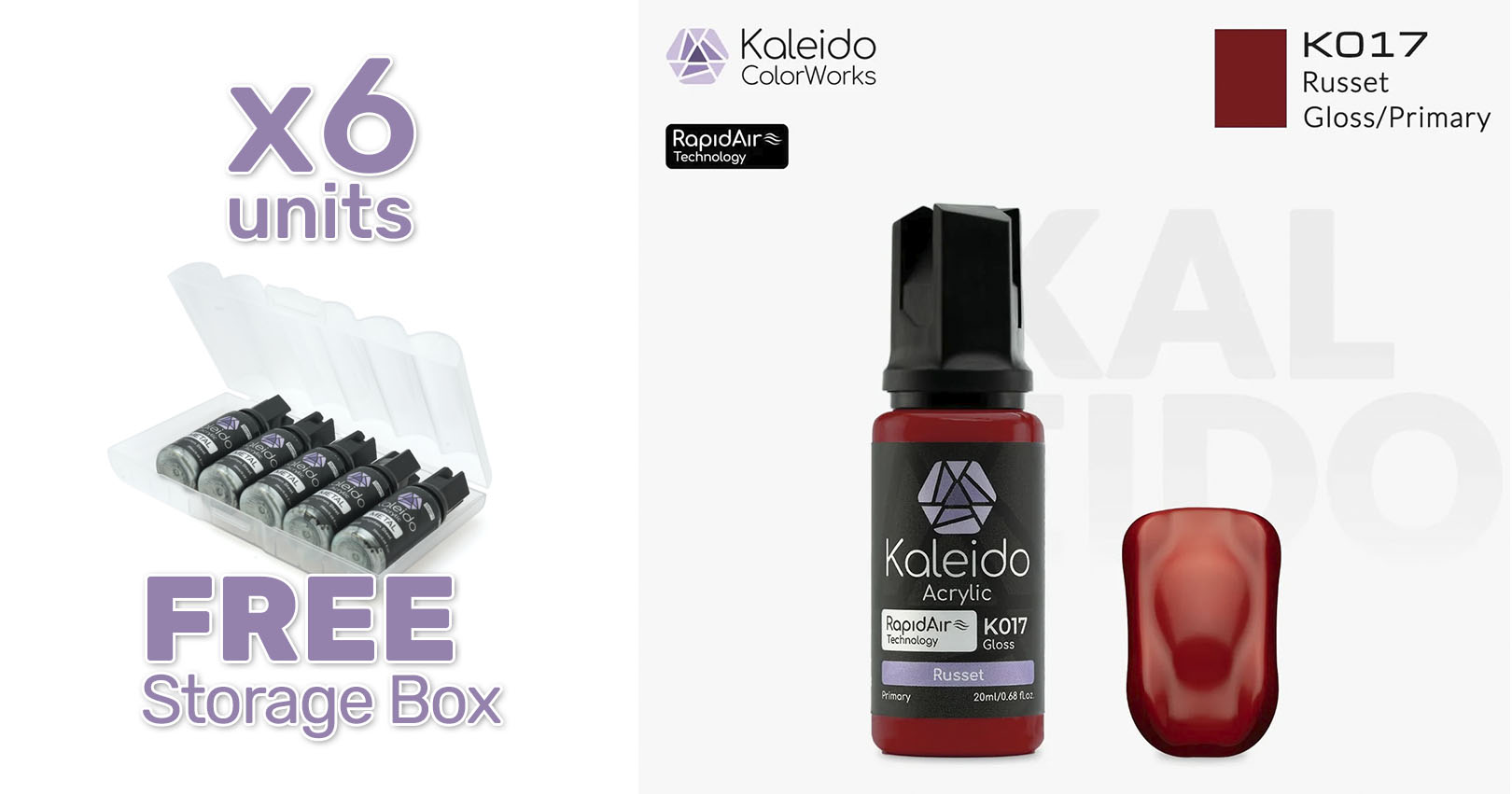 Pintura Kaleido K017 rojo oscuro brillante . Rapidair 6x20ml
