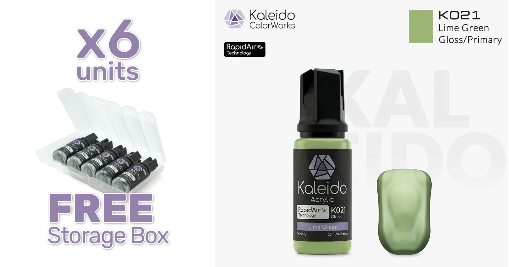Pintura Kaleido K021 Verde lima brillante . Rapidair 6x20ml