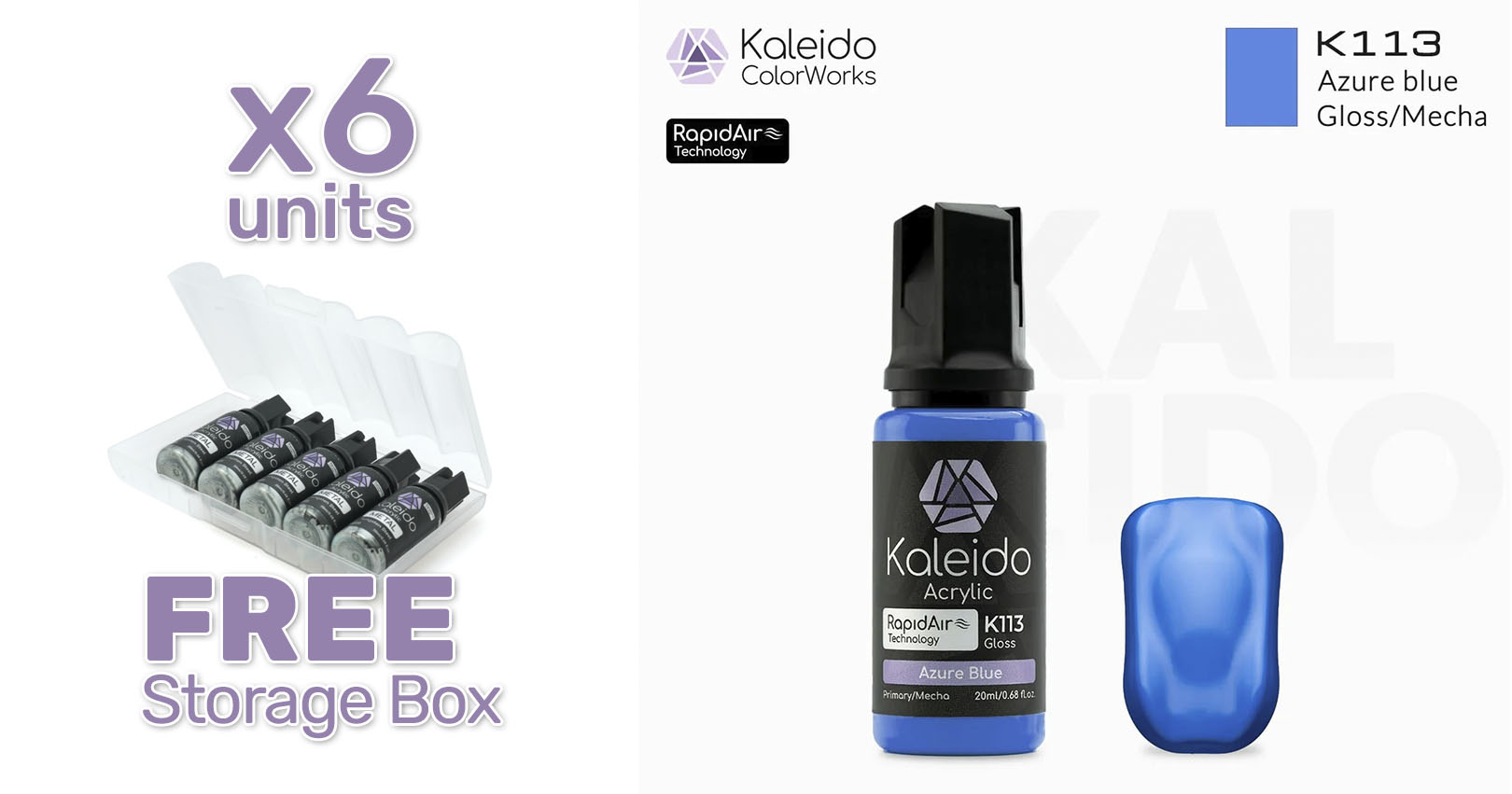 Pintura Kaleido K113 Azul azure brillante. Rapidair 6x20ml. Mecha