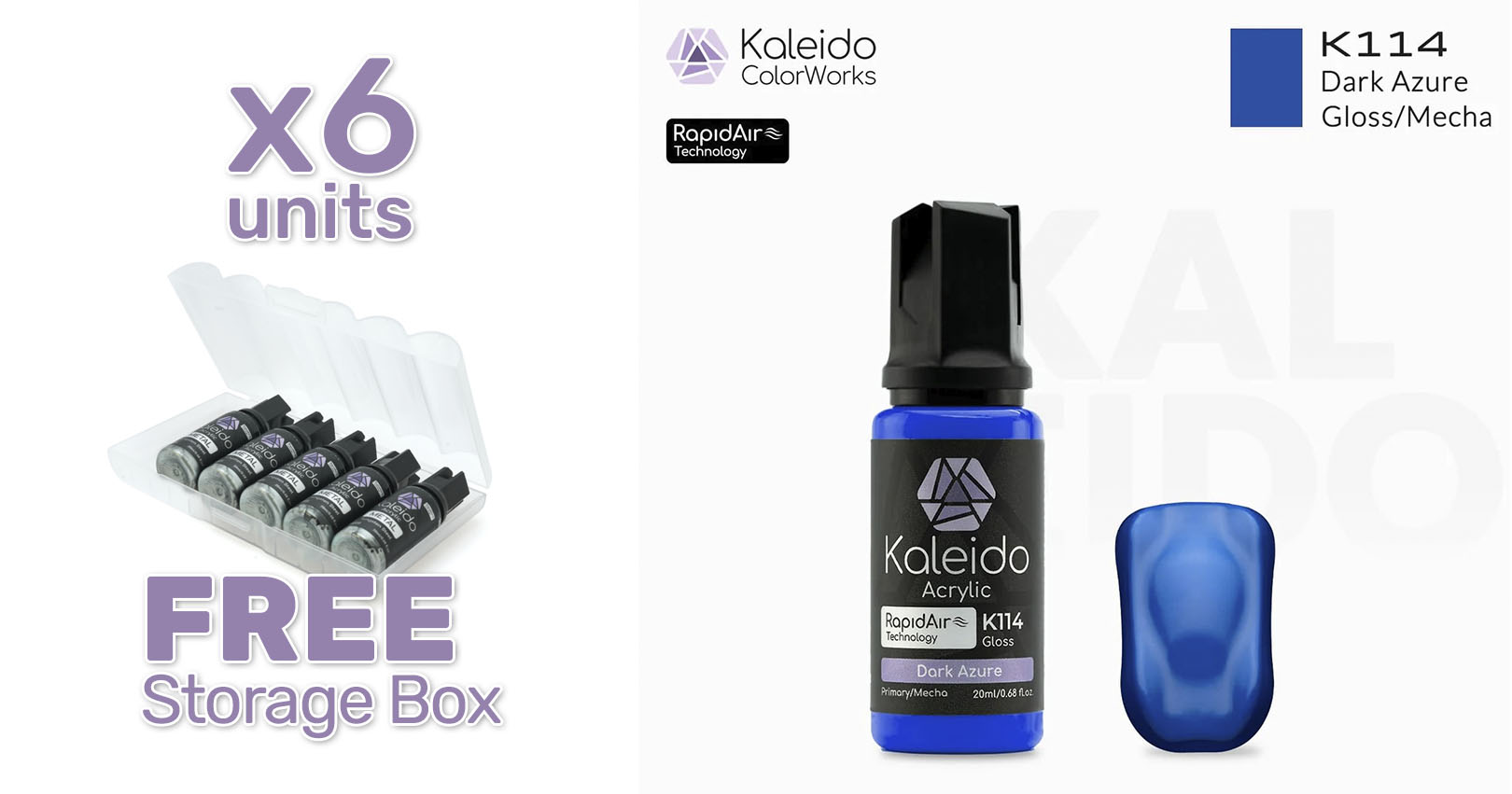 Pintura Kaleido K114 Azul azure oscuro brillante. Rapidair 6x20ml. Mecha