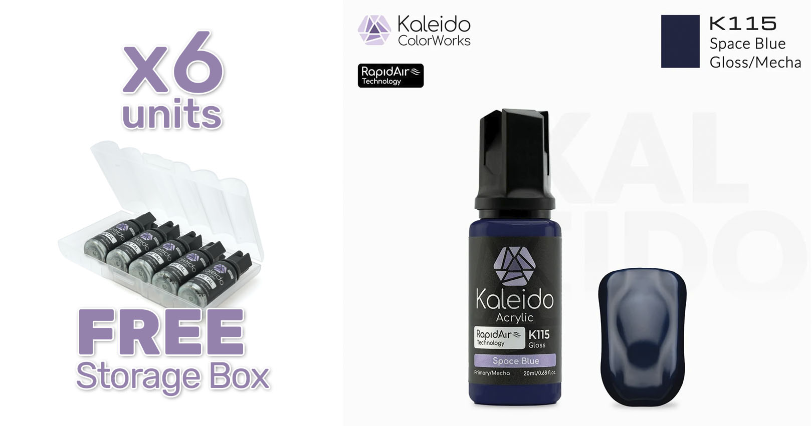 Pintura Kaleido K115 Azul espacial brillante. Rapidair 6x20ml. Mecha