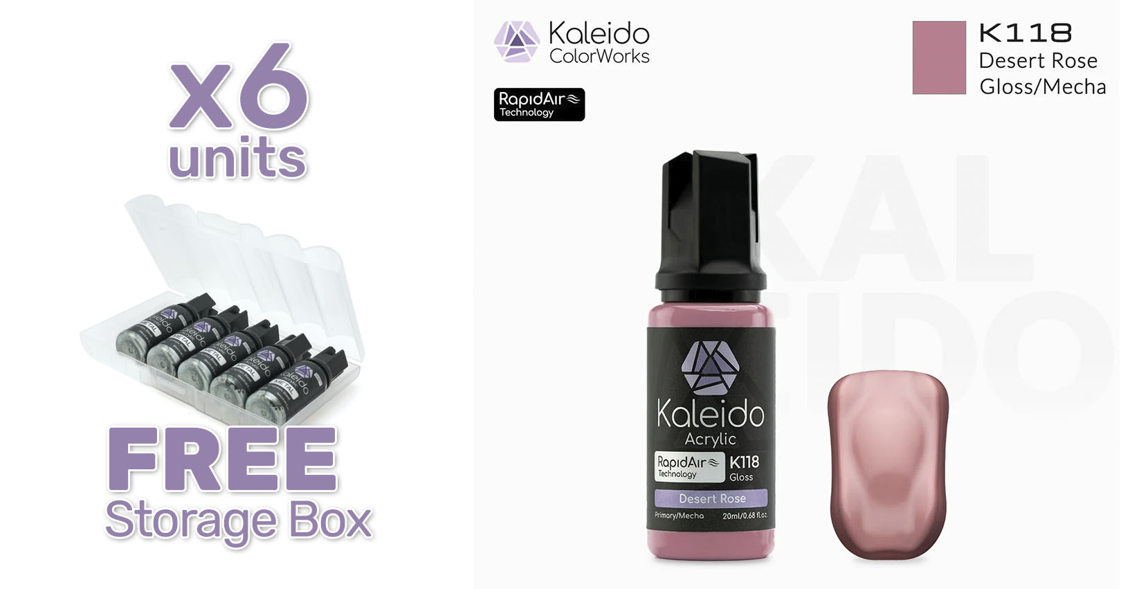 Pintura Kaleido K118 Rosa desierto brillante. Rapidair 6x20ml. Mecha