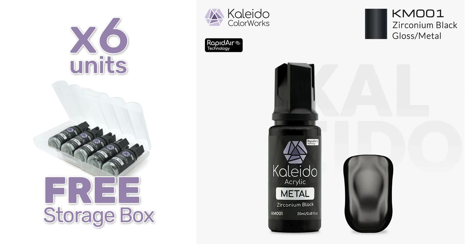 Pintura Kaleido KM001 Negro zirconita metalizado. Rapidair 6x20ml.
