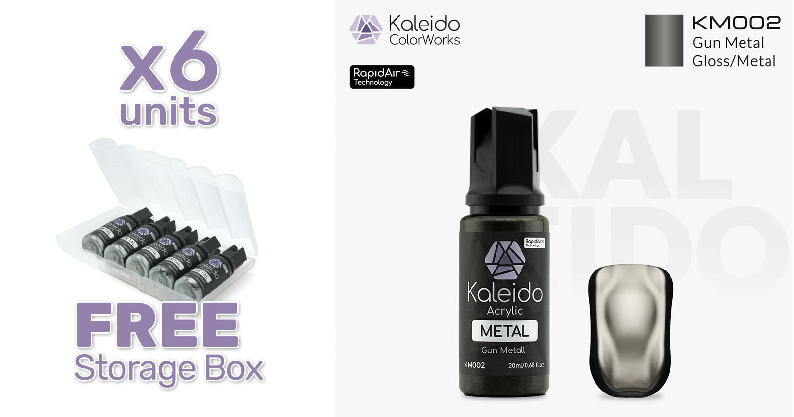 Pintura Kaleido KM002 Gun metal metalizado. Rapidair 6x20ml.