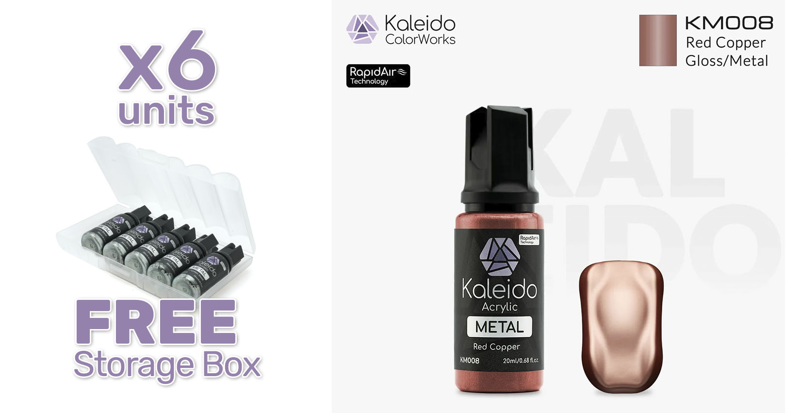 Pintura Kaleido KM008 Rojo cobre metalizado. Rapidair 6x20ml.