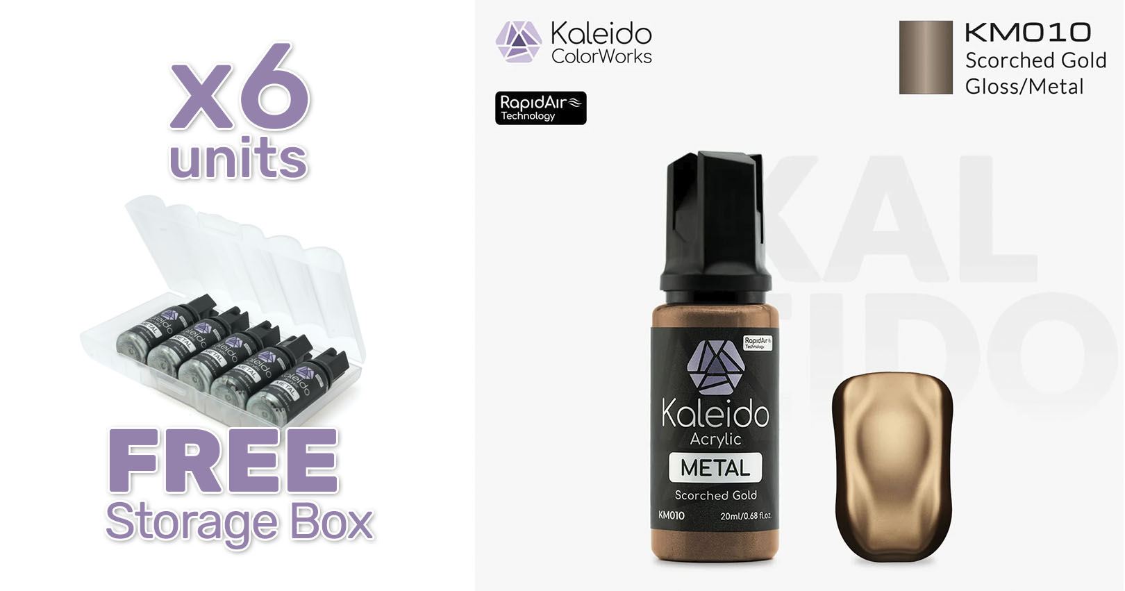 Pintura Kaleido KM010 Oro chamuscado metalizado. Rapidair 6x20ml.
