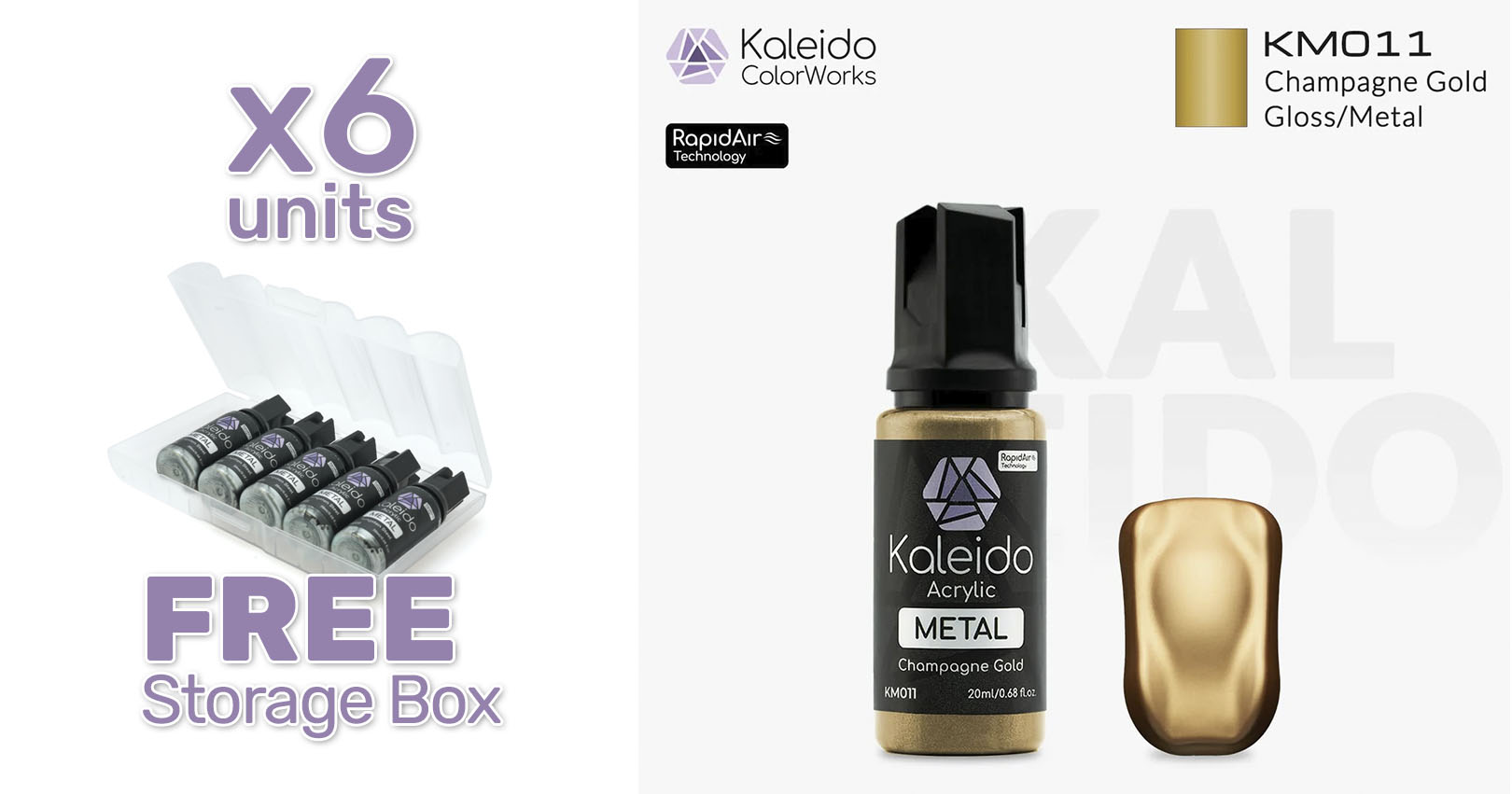 Pintura Kaleido KM011 Oro champagne metalizado. Rapidair 6x20ml.