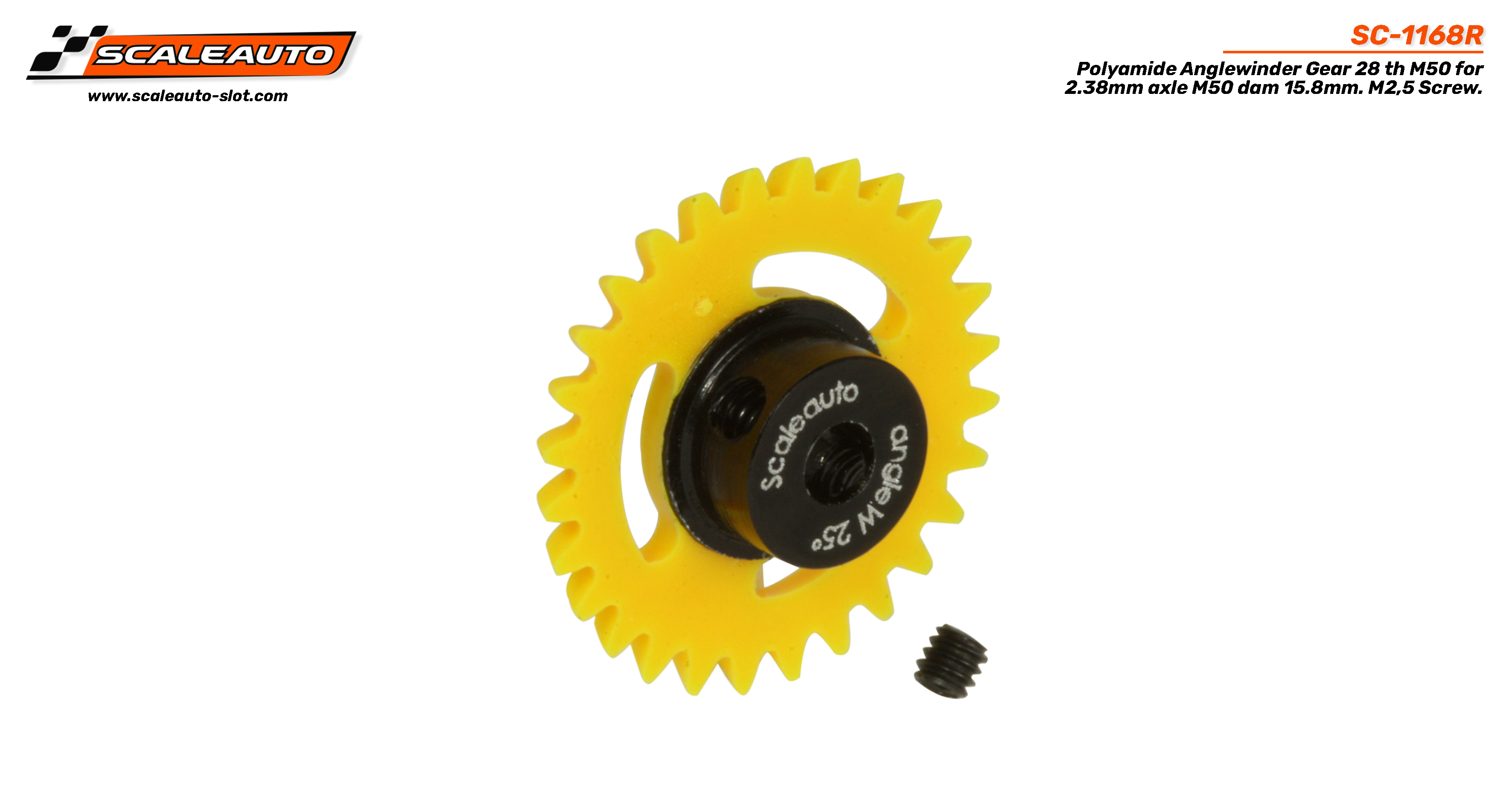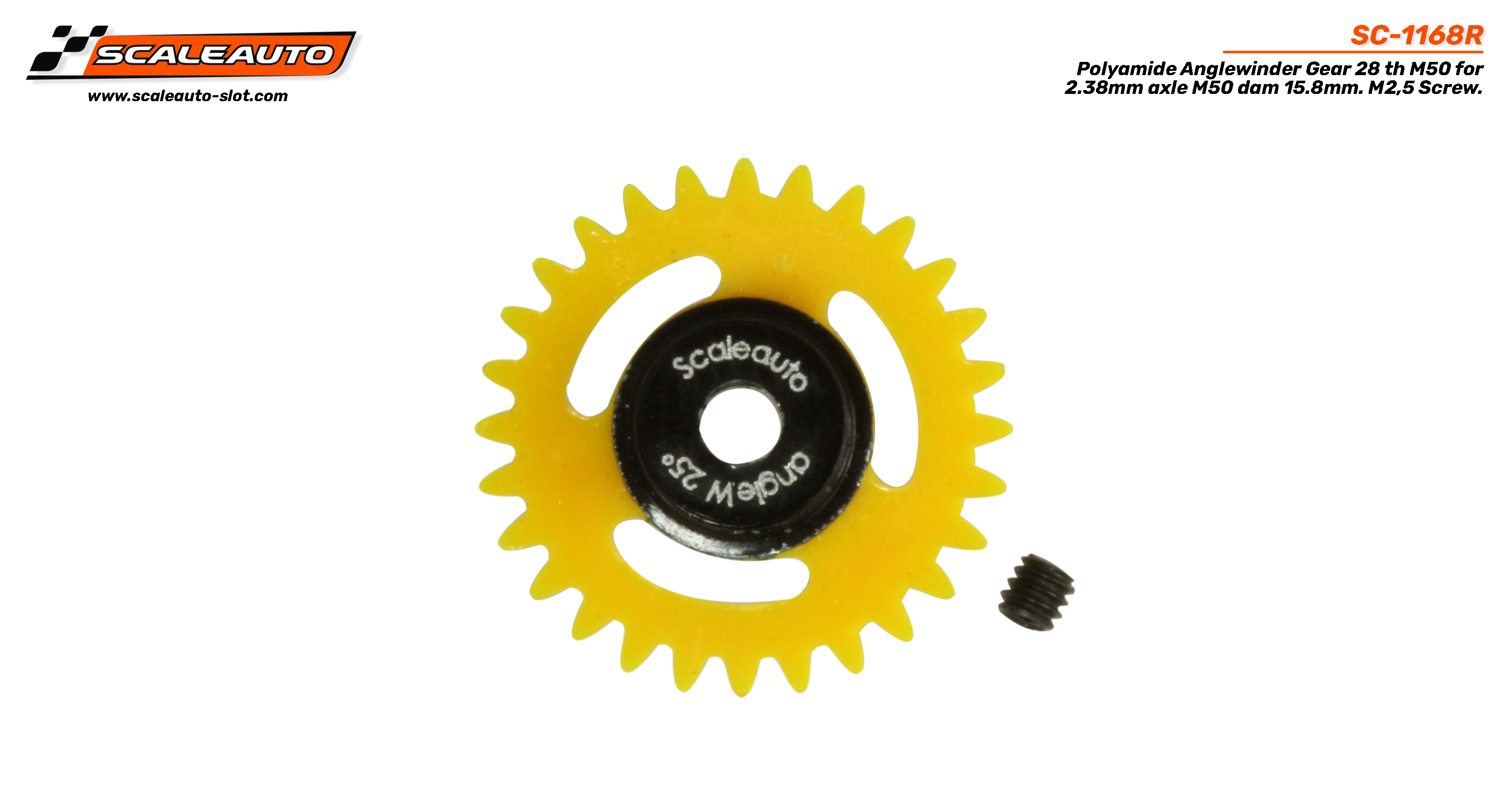 Corona 28d. M50 Polyamide Anglewinder 25° Procomp-RS para eje 2.38mm ø15.8mm. Tornillo M2,5.