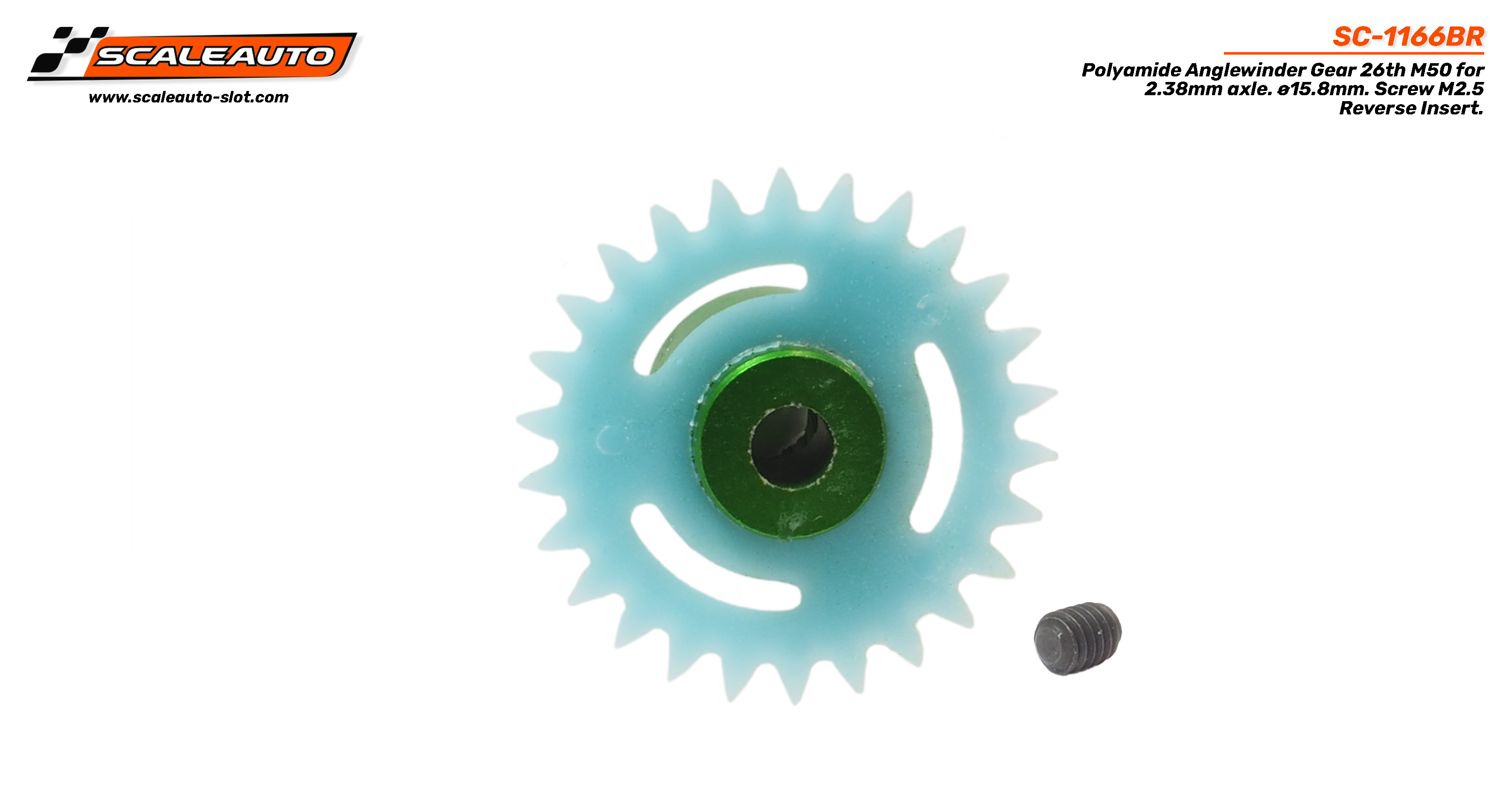 Corona 26d. M50 AW 25° ø15.8mm. Eje 2.38mm. Procomp-RS Polyamide. Tornillo M2.5 Reverse Insert