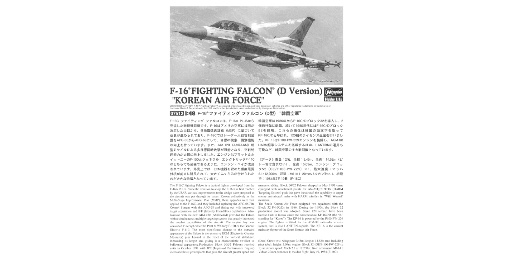 Kit 1/48 F-16D Fighting Falcon Korean air force