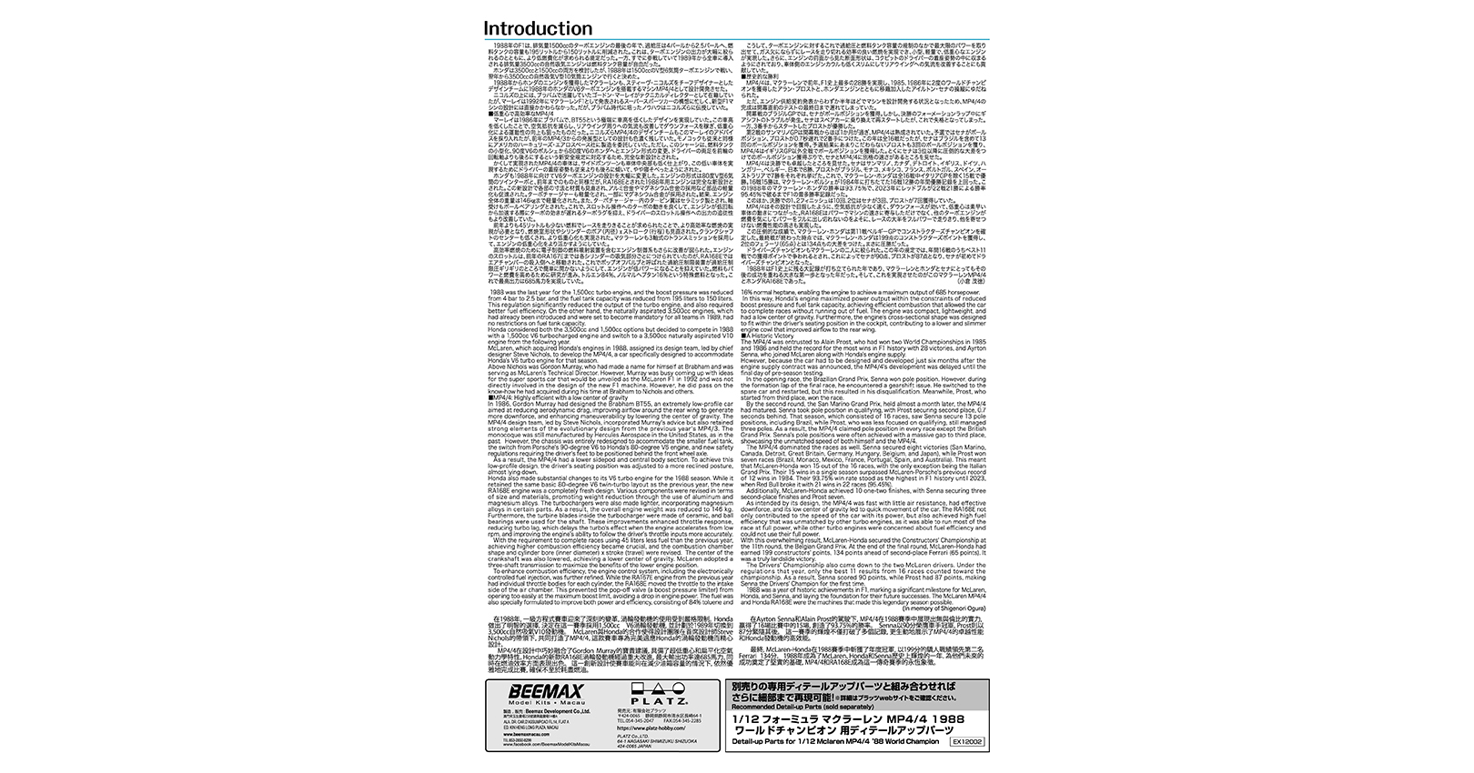 Kit 1/12 Mclaren MP4_4 1988 with Rain tyres