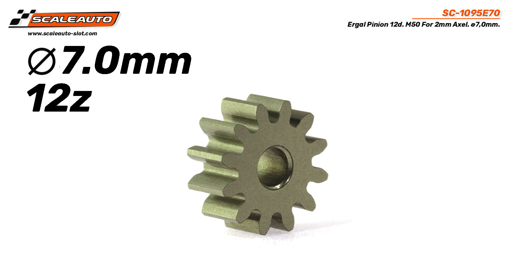 Ergal Pinion 12d. M50 For 2mm Axel. ø7,0mm.