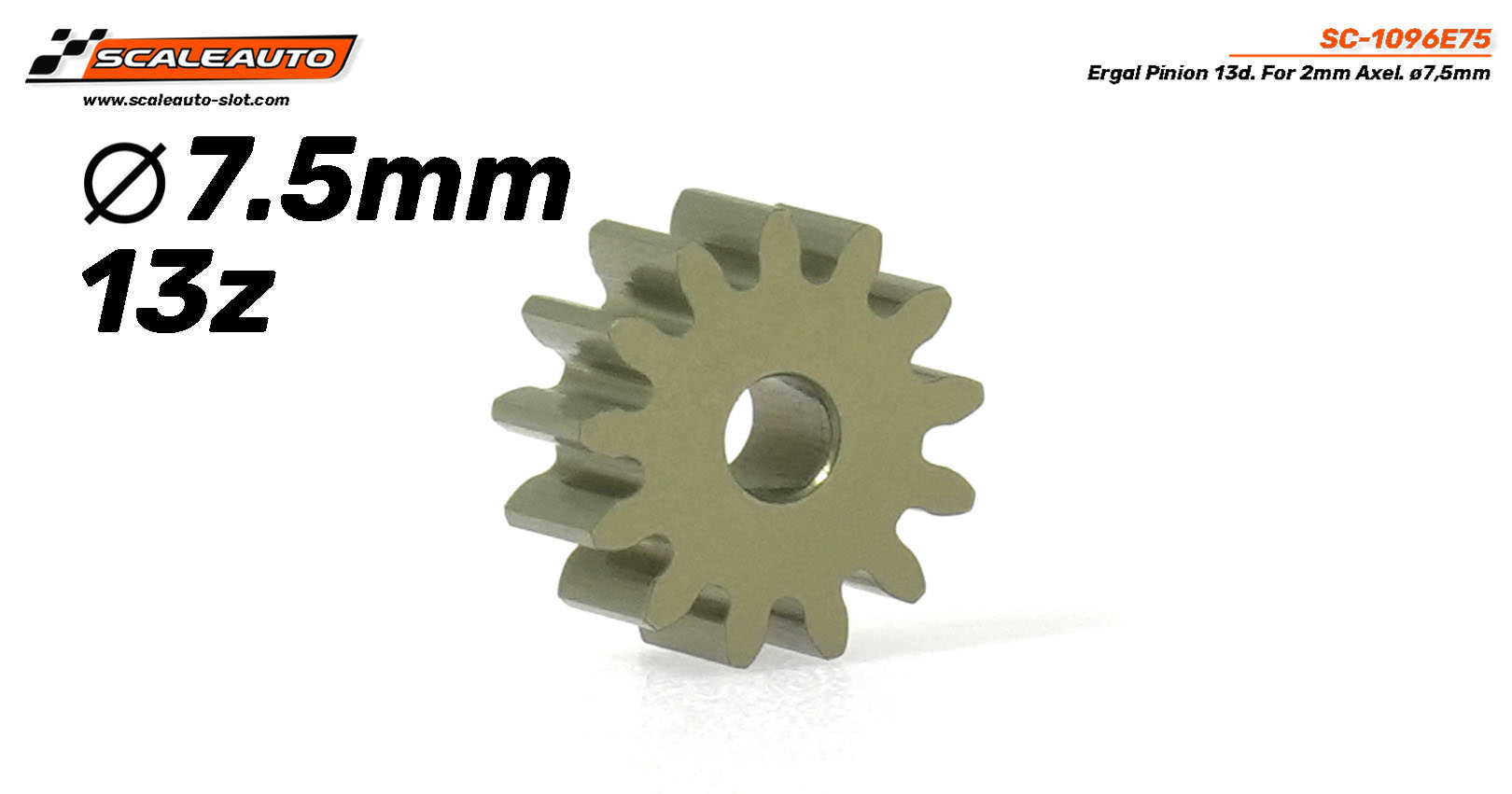 Piñón 13d. Ergal ø7,5mm para eje de 2mm